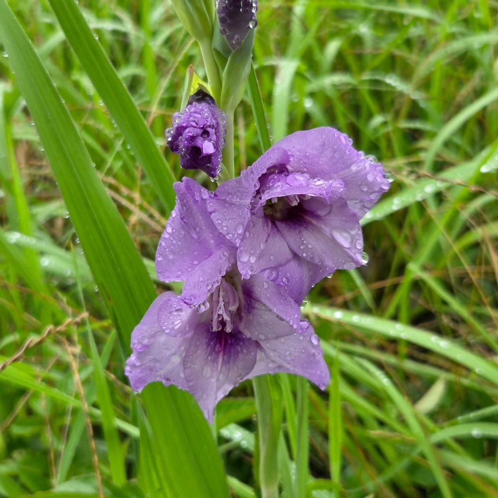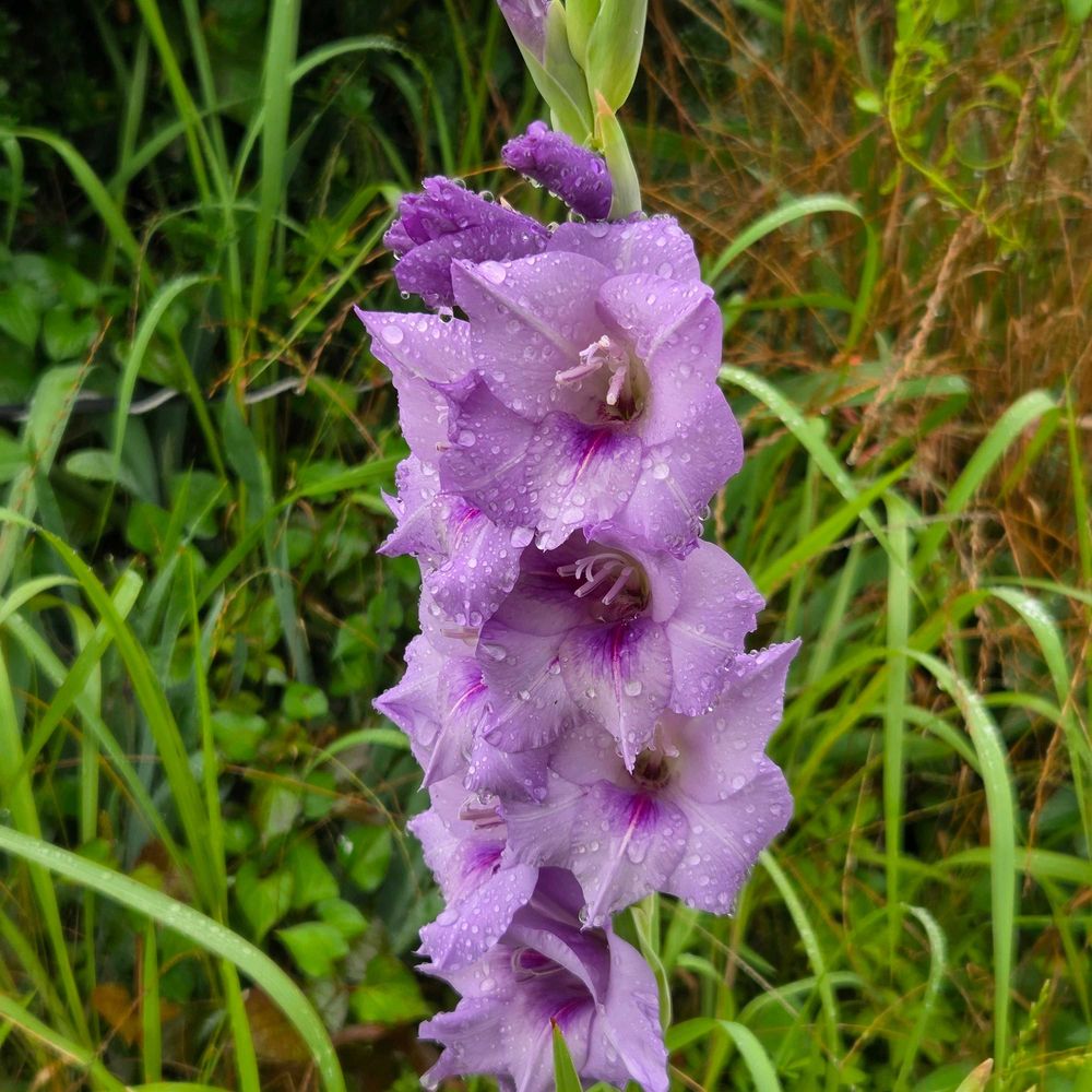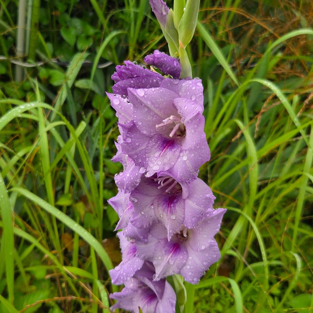 赤花に続いて紫花が開花しました!グラジオラスは植え替えをサボり気味なのであまり今年は花数が多くないと思います😅