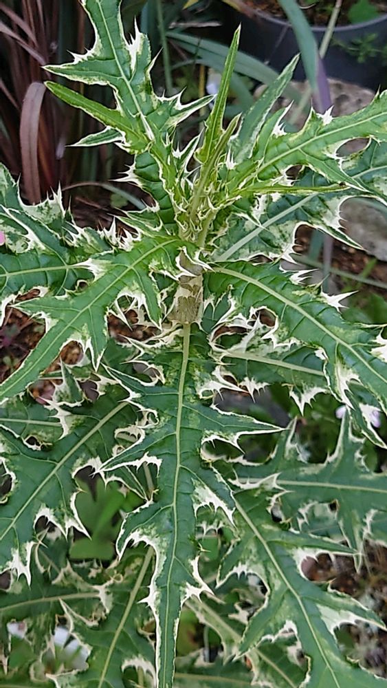斑入りアザミトゲトゲが痛そう😭どんなお花が咲くのかな?