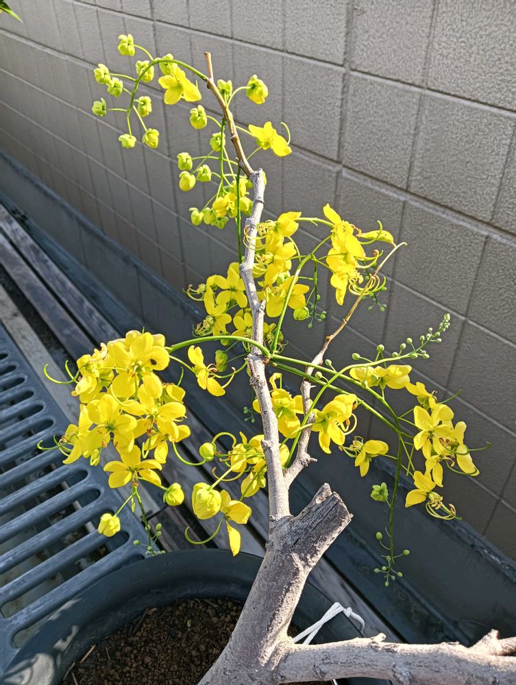 沖縄に夏を告げる花ゴールデンシャワー(ナンバンサイカチ)が甘い香りを漂わせながらだいぶ咲いてきました。そして去年よりも花数が増えており今年で沖縄から枝を頼み挿し木して4年目になりますが毎年咲いてくれます。ちなみにタイの国花でもありラーチャプルック王様の木として知られております!