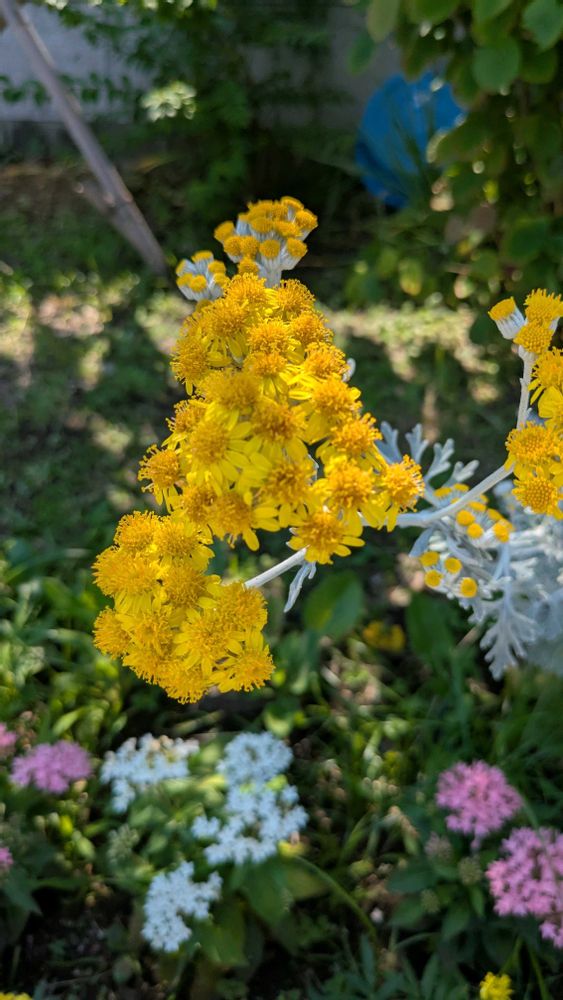 散歩道🚶、シロタエギクが咲いてます🌸🌸