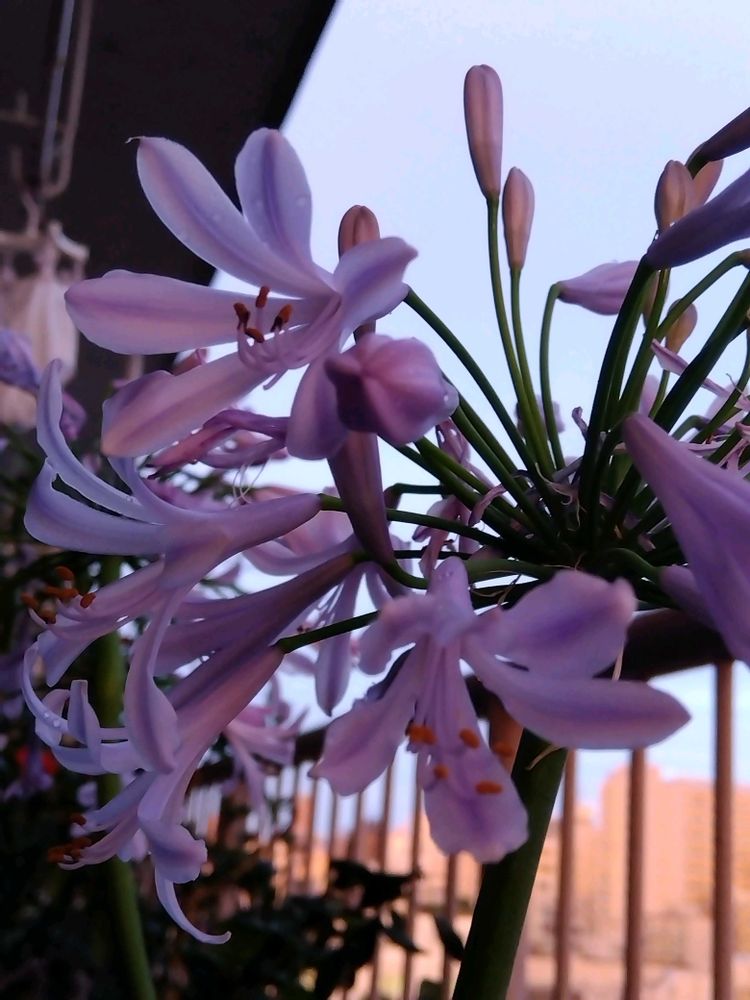 アガパンサスが夕焼けに染まり美しい