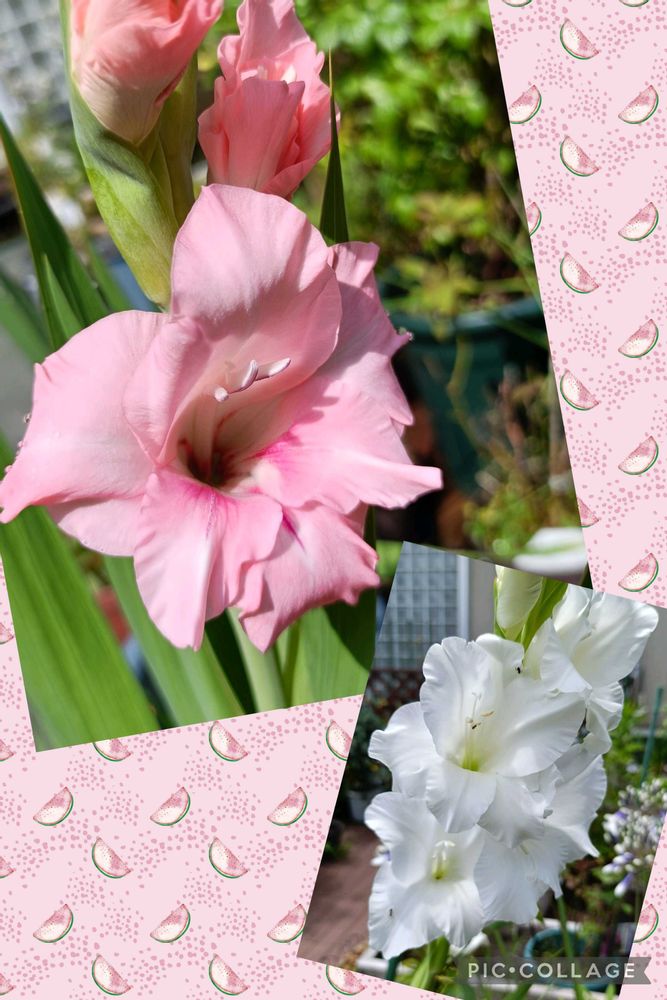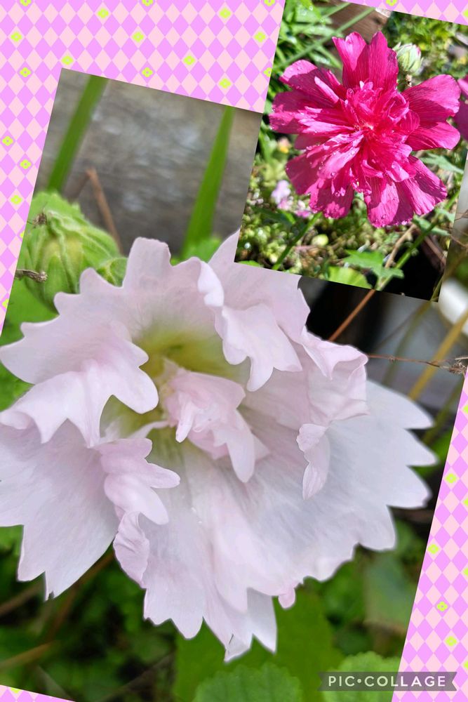2枚目は、薄いピンクのタチアオイも今朝咲きました😉