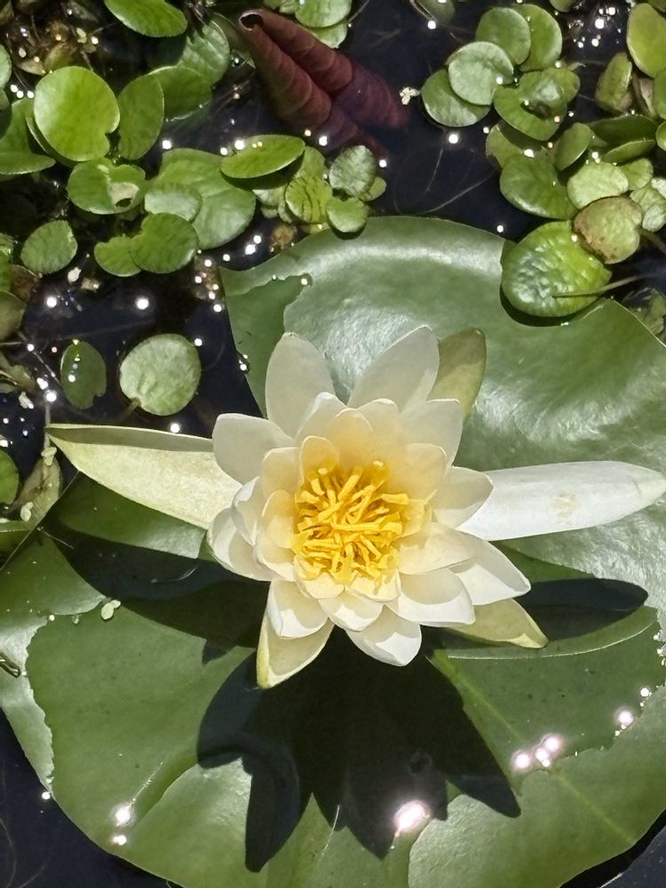 今朝、今季初めて庭のタライ栽培の睡蓮が咲きました〜😃🎊🙌🙌🙌