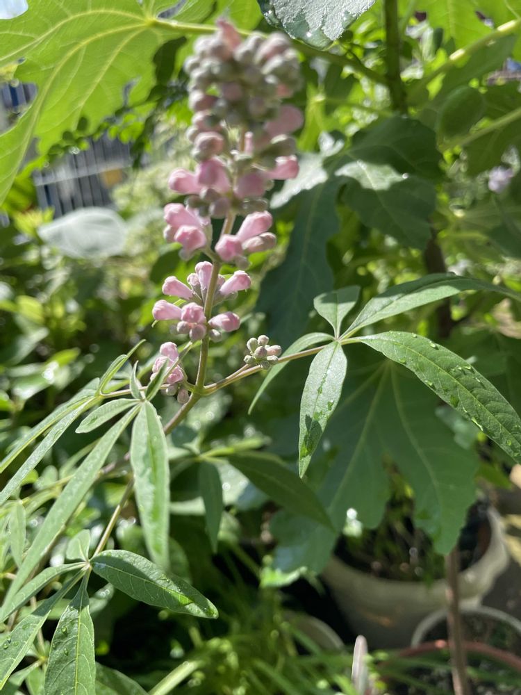 西洋ニンジンボクは冬は枯れますがまたにょきにょき生えて蕾に。びっしり咲きそうです。🩷淡いピンクですよ。
