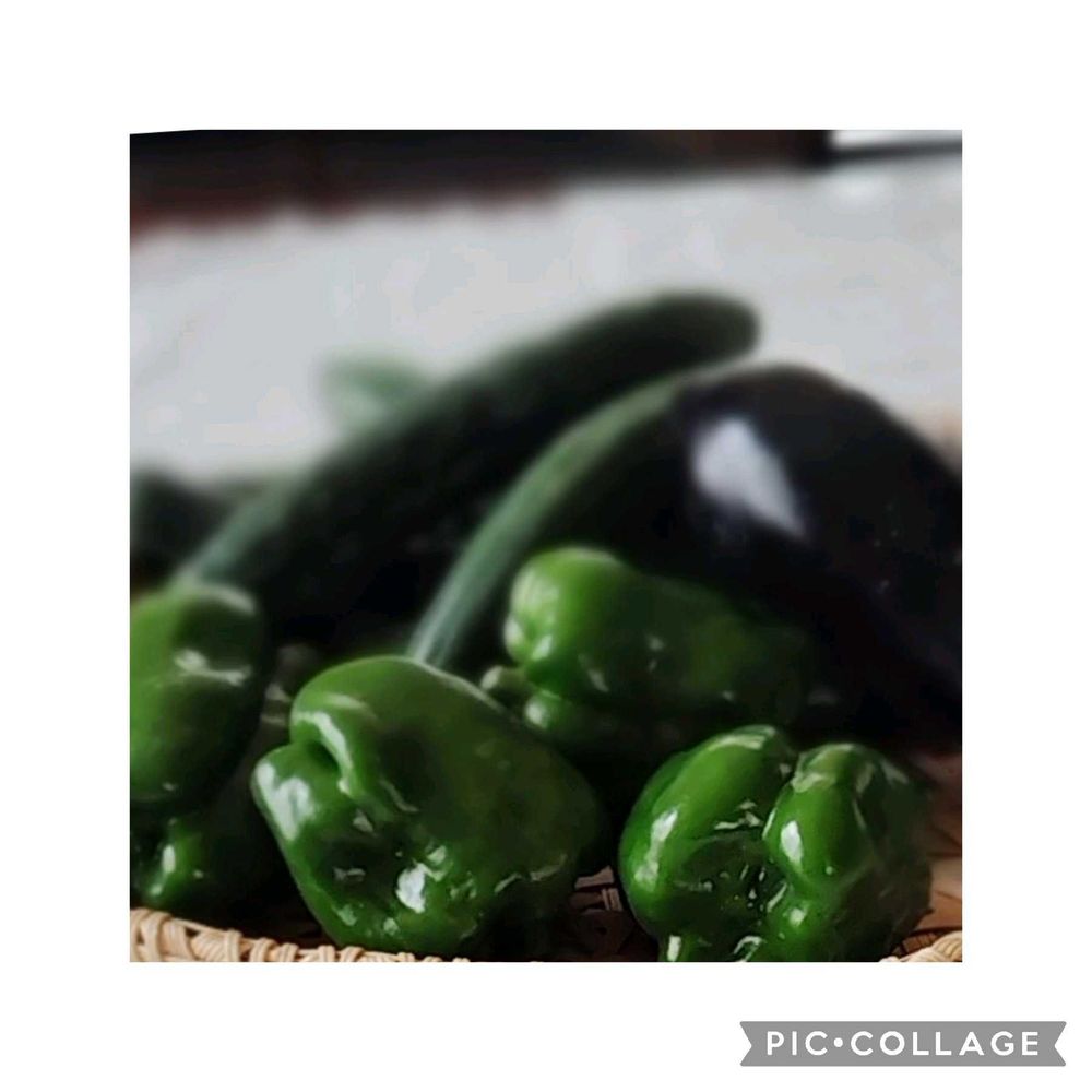 今は体調がイマイチなので ナスとピーマンは簡単にフライパンで焼いて 青じその千切りパラリ おろしショウガでお醤油