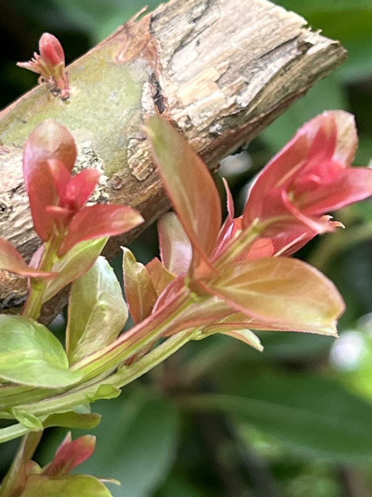 ツルツルのサルスベリの木から新芽が出てきていました👀