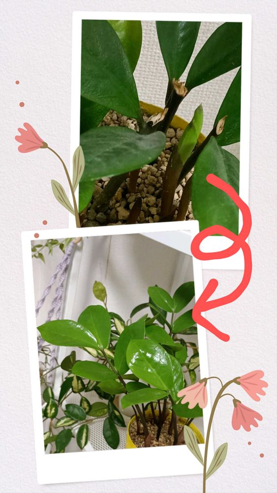 ザミオクルカスの枝を1本いただいて数本にカットして挿し木してから1年以上経過しました。ようやくザミオクルカスさんらしく🌿