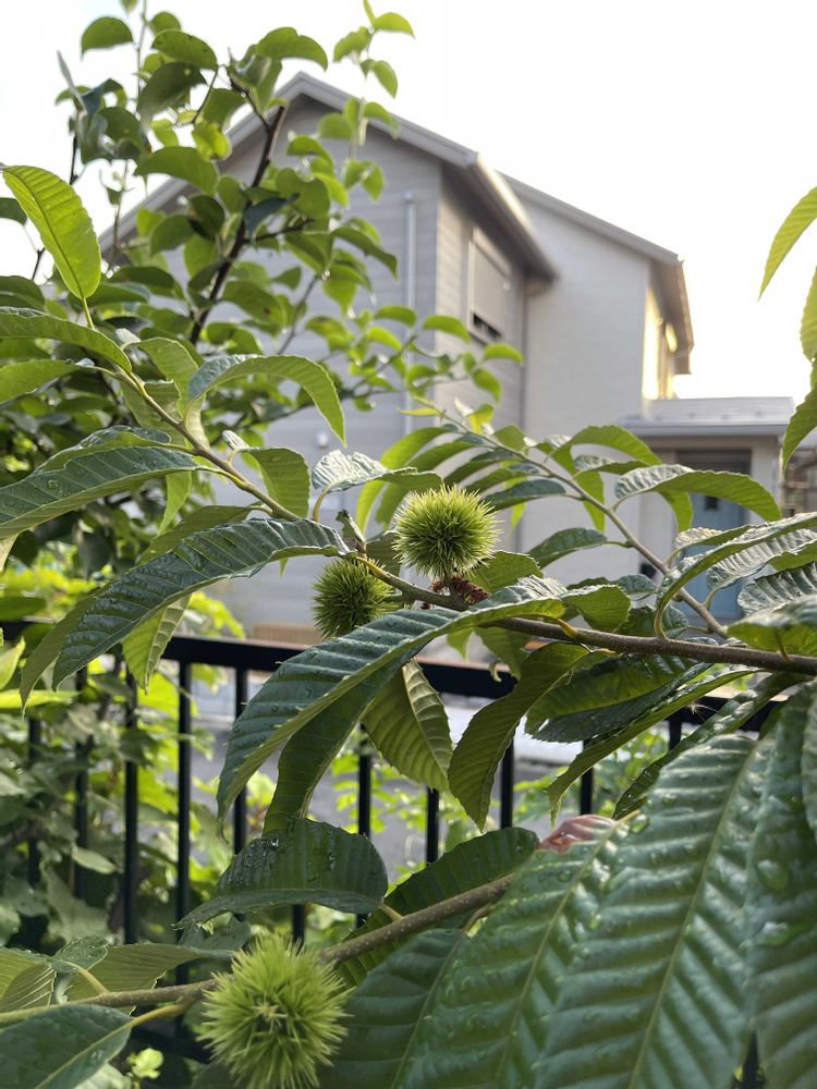 まだ触っても痛くないくらいのイガイガですが、これからポトポト自然落下もしていきます。 さて、秋まで何粒残って美味しい 何か になってくれるでしょうか..🙄