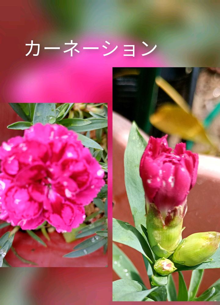 ④花友さんに頂いた小さな苗(ガーネーションよね!?) 2ヶ月たって、花が咲き始めてます💓