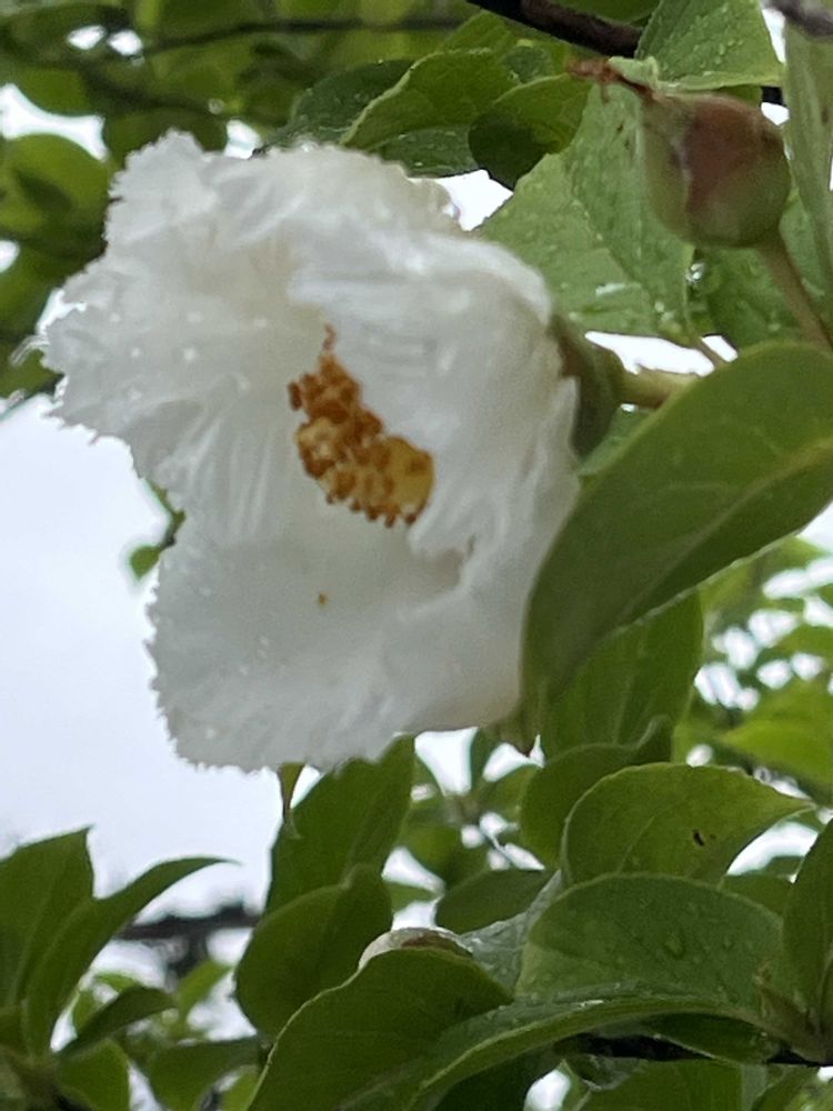 雨の中皮膚科へ行く途中に見つけたお花とお天気の良い日に別の場所に咲いていたナツツバキです