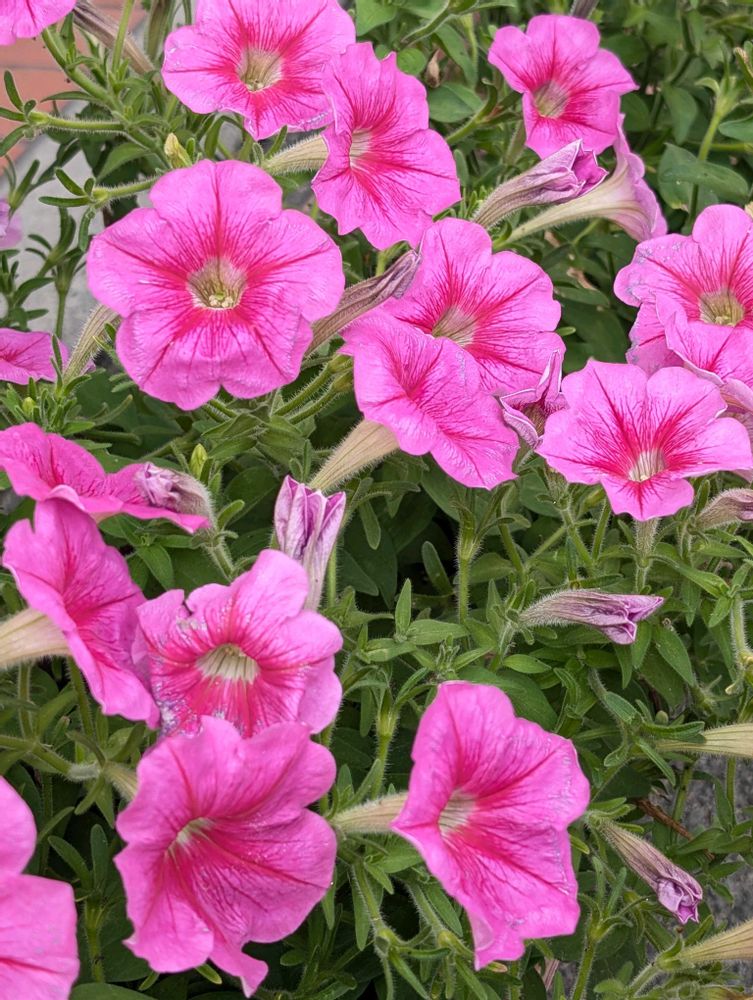 コンビニ入り口がペチュニアで花盛りでした🩷🤍💜