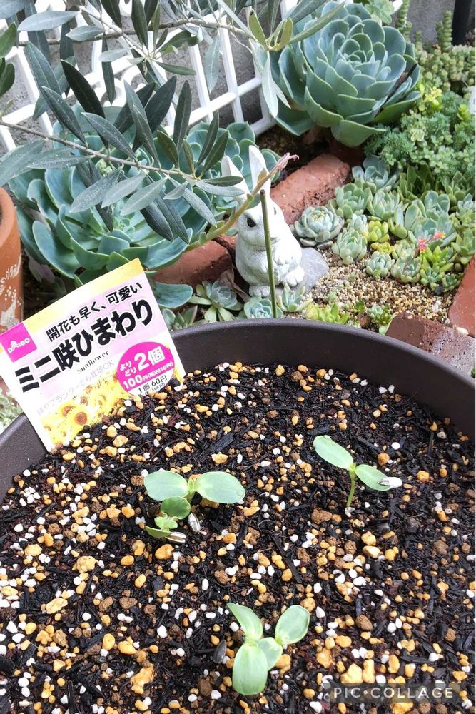 3枚目は、種蒔きしたミニひまわり🌻の発芽。