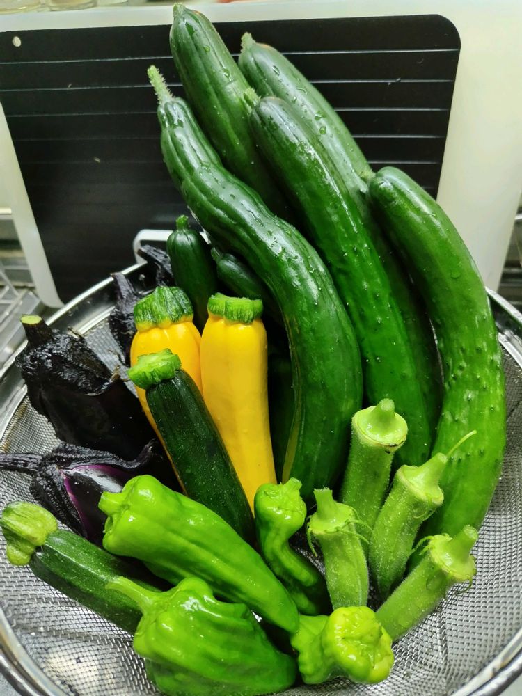 ただ、娘や婿さんに、「今年もまたこれから毎日きゅうり、ナス、ズッキーニ、オクラ、ピーマン漬けの食生活が始まるよ」って言っておきました🤭