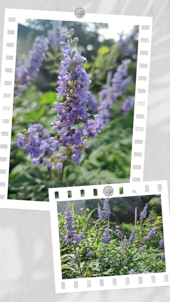 庭の土手に地植えした西洋ニンジンボクが咲いています。