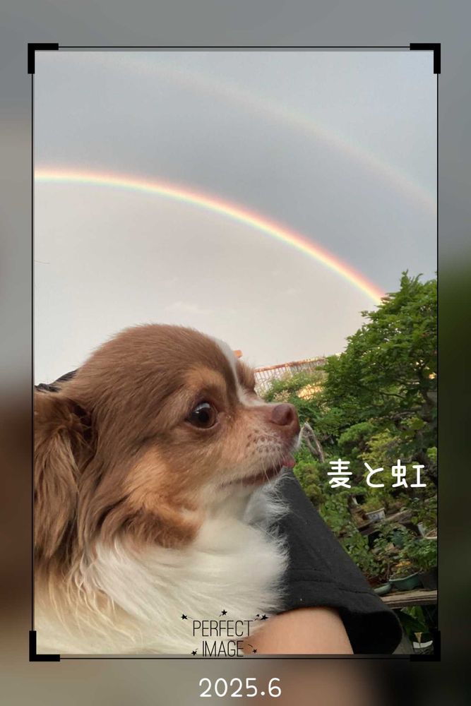 実際は過去一発色のよい立派な虹がかかったのでチワワの麦とパチリ📷∩(´∀`)∩ワァイ♪