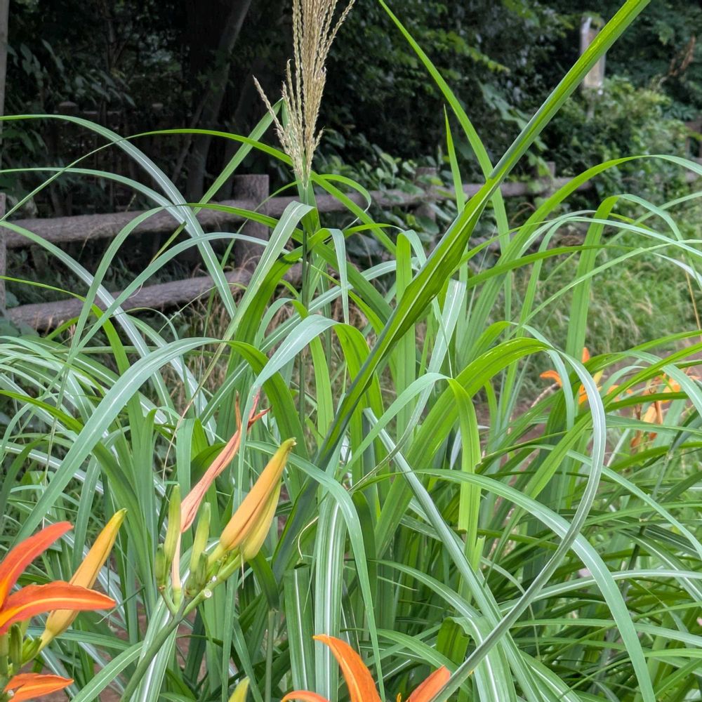 キスゲ?オレンジの花が、キレイで、写真が例によってキレですが、ススキの穂が出ていました。