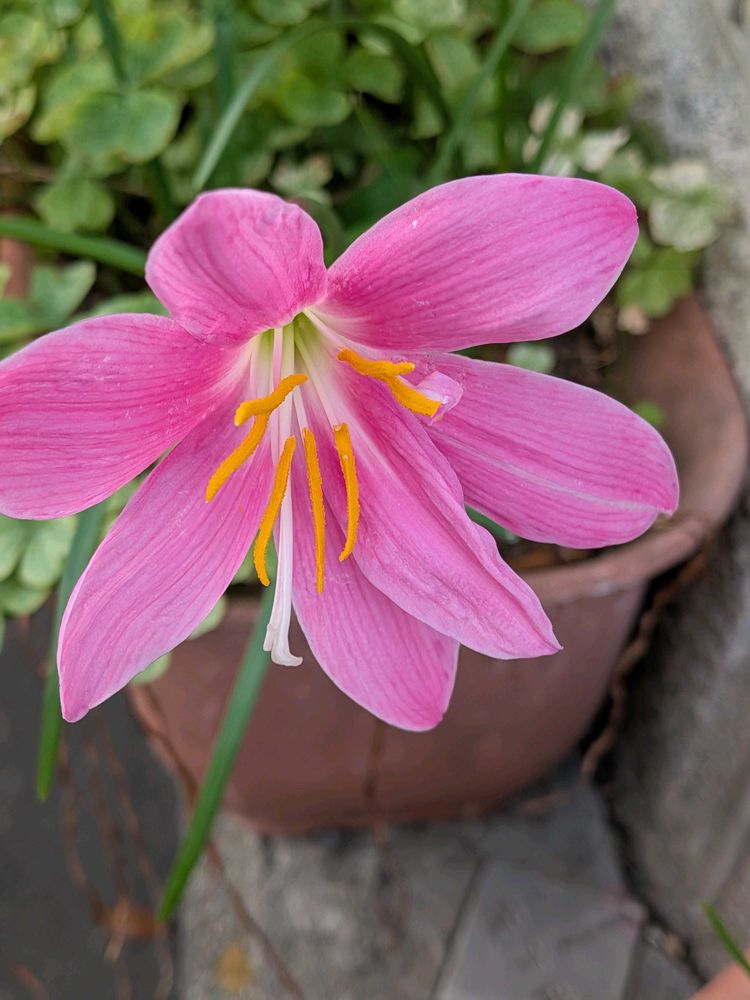 1️⃣今季最初の我が家のゼフィランサスカリナータが開花しました。ここ数年咲かなくて去年株分けしたら咲きました。