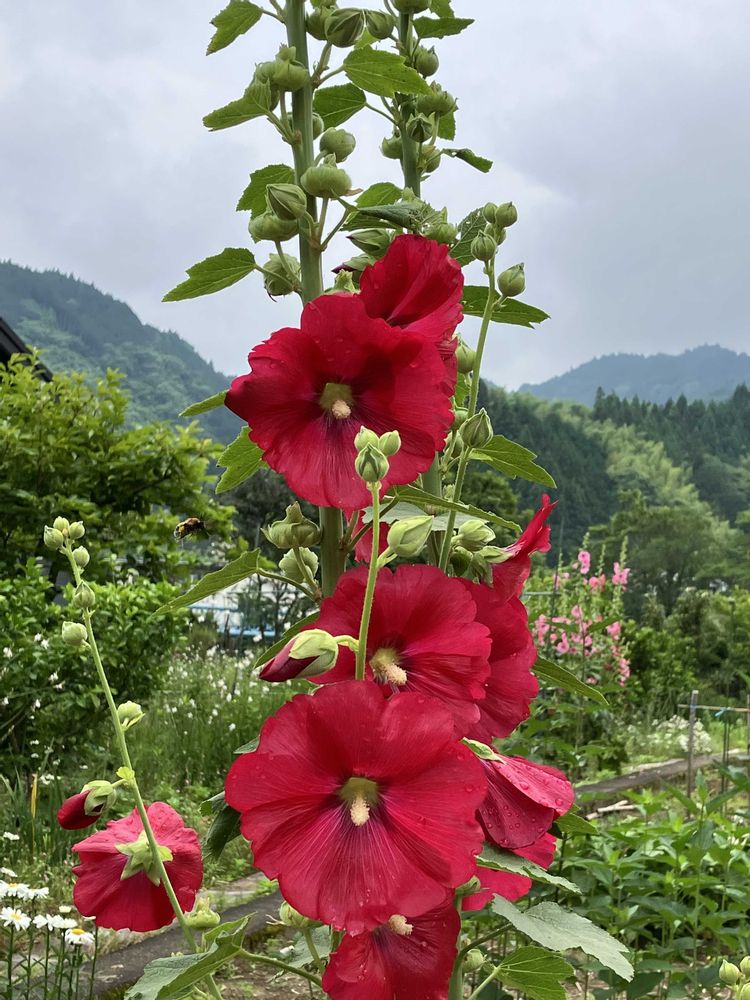 ほたるぶくろさんのタチアオイ,出会いに感謝,山道での投稿画像