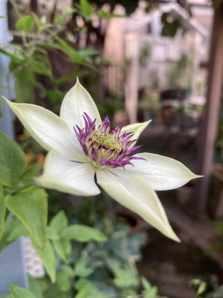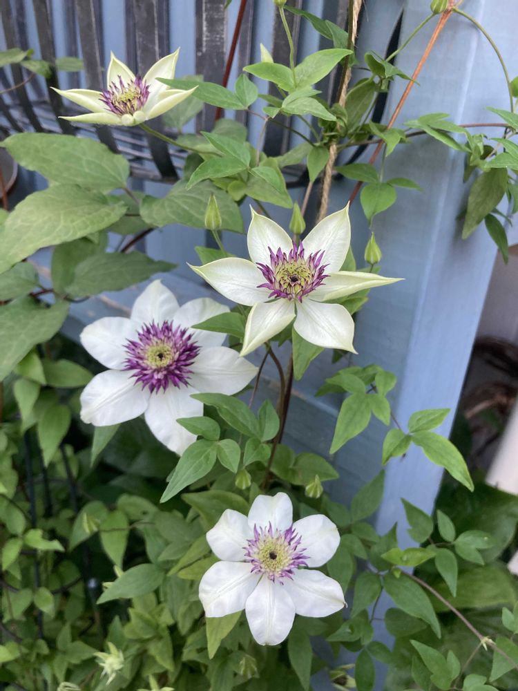 いつもクレマチスのラストで 夏も終わり頃にヒョロヒョロ顔を出し 毎年枯れたか?と心配のクレマチスでした