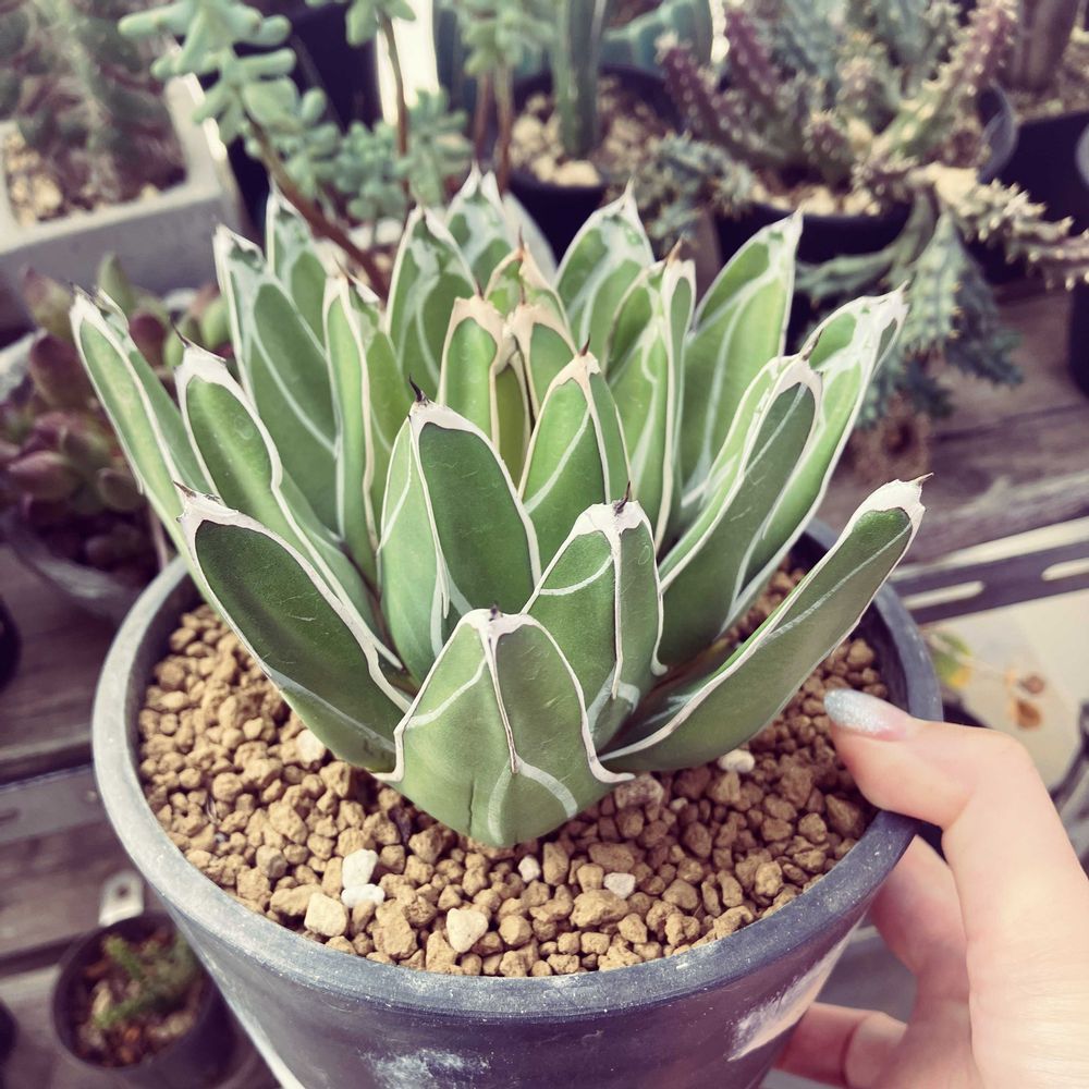 2017年より多肉植物にハマり中。 ヘンテコな形大好き。 普及種からレアなものまで心に刺さった植物を収集中。 アガベは丸っこいボール型や低重心タイプが好き 多肉植物に癒される日々。