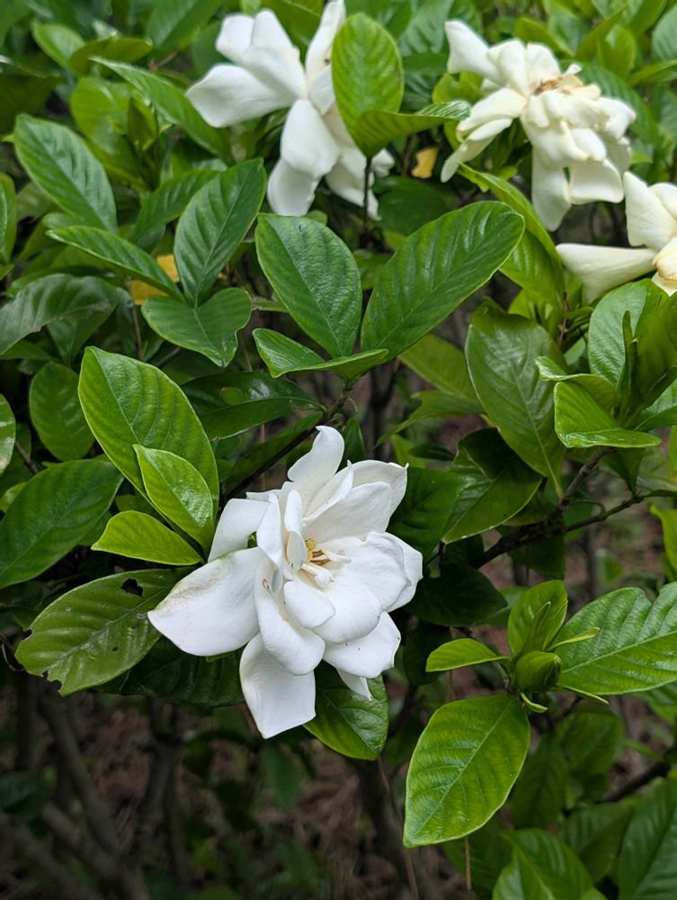 クチナシ✨♡✨ 大好きな香りです😌💓 此れは八重咲きだから赤い果実はならないんだね~💦 そう言う我が家も八重咲きなんです😆 蕾が膨らんで来たよ😃