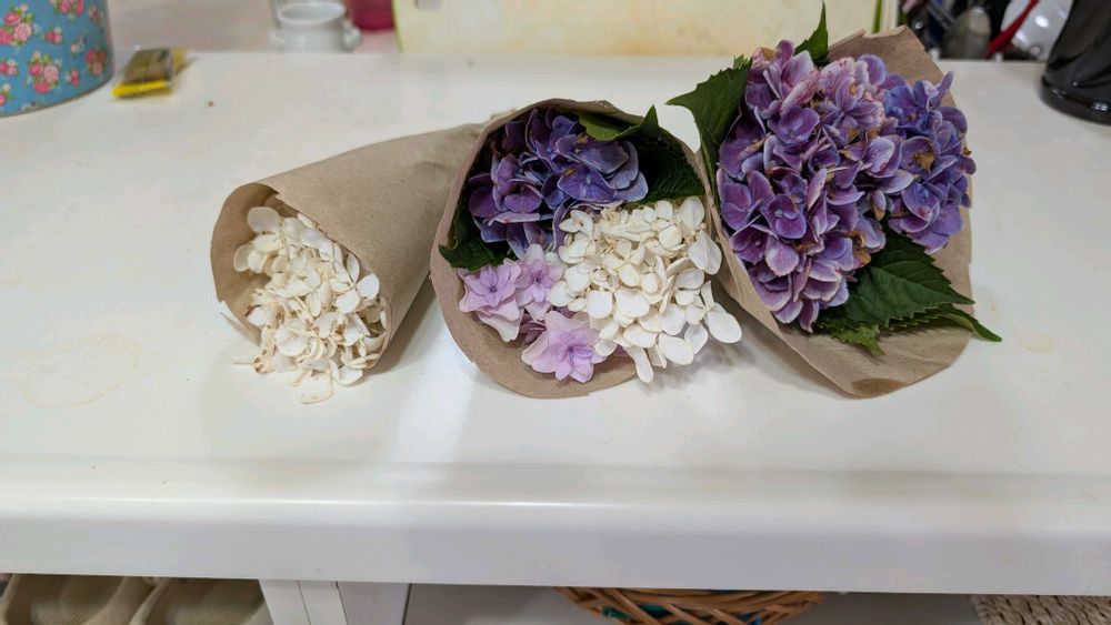 アジサイの花が終わりかけて、カット✂️したアジサイをスワッグ💐にしてトイレ🚽に飾るだけ、、、