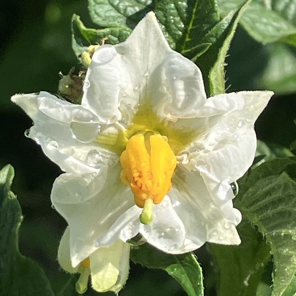 以前は、男爵系の芋の花は白く、メークイン系の花は紫色と覚えれば良かったのですが、最近の品種改良で沢山の品種が登場しているので、一概に花の色で男爵系・メークイン系とは判断出来なくなりました😅