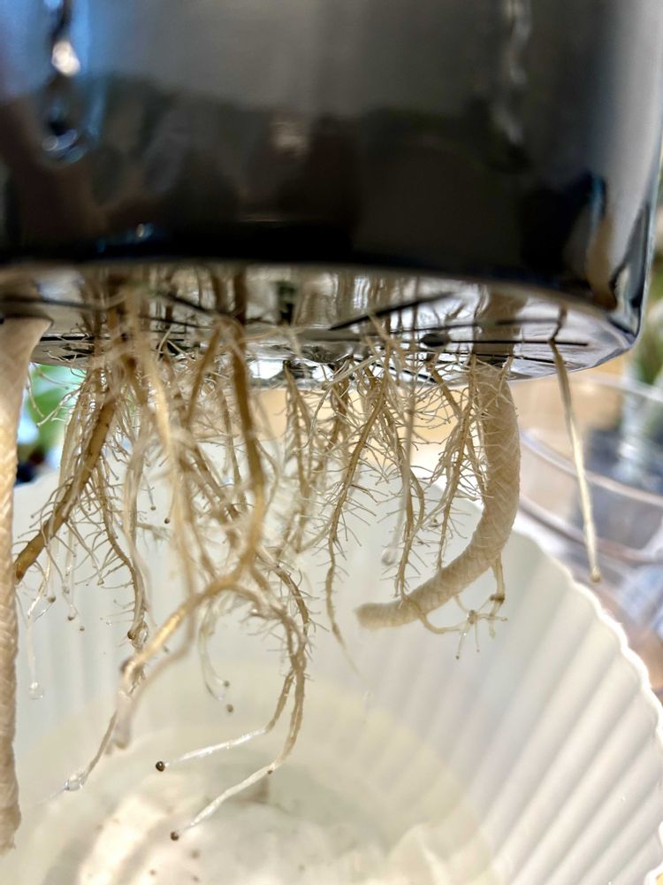 半水耕栽培セミハイドロポニックス😊発根状態チェック✅カラテアオルビフォリア😊いい感じです😊ビューティスターとロゼオピクタはまだまだです😊