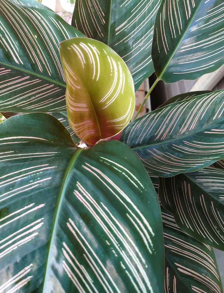 カラテアのサンデリアーナちゃんの新葉が真ん中から登場〜😆🩷