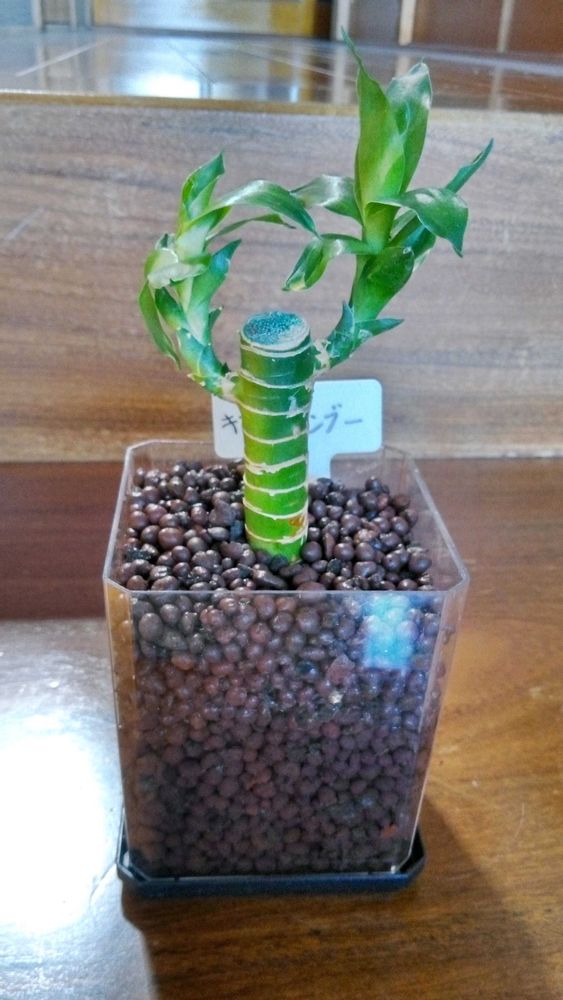 100円ショップで「キングバンブー」買ってきました。鉢は、フィギュア用のケースを逆さまにして使いました😅