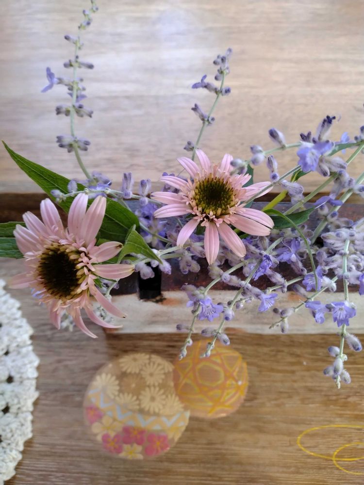 1)ロシアンセージとエキナセア バタフライキッシーズをテーブルに