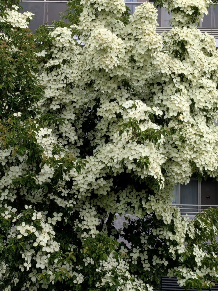 昔から関東にもある落葉のヤマボウシは花の密度は程よいけどこのトキワヤマボウシは葉っぱが見えなくなるほど花が着きますよね❁⃘*.゚