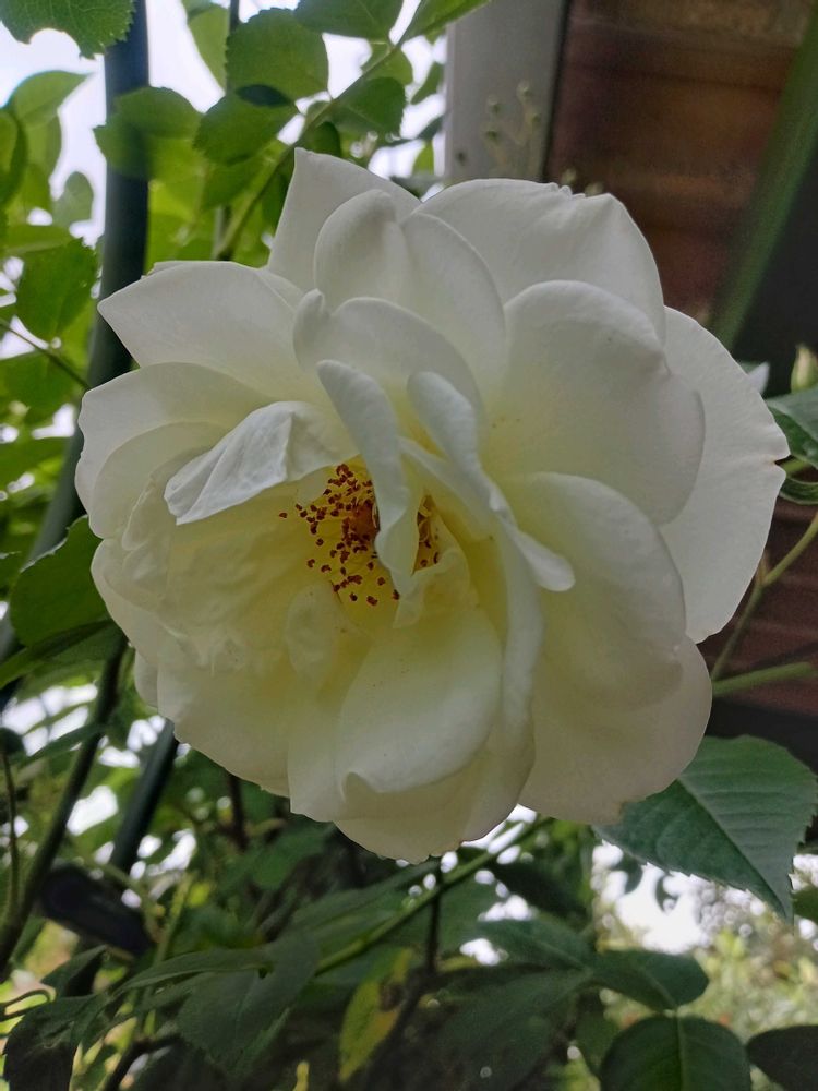 樹高が高くなります車庫の屋根近くで咲くので見上げ撮影です。