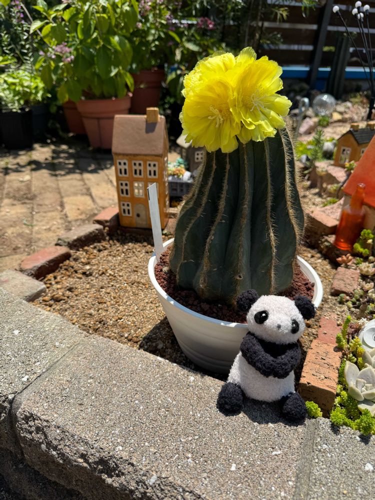 ココさんの大きな栄冠丸🌵のお花🌼を貸してもらって記念撮影🏠🐼