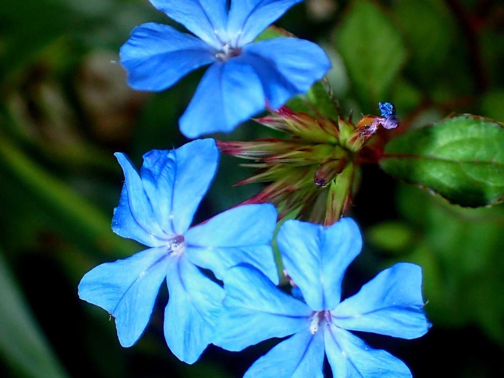 よく似た仲間のルリマツリモドキ(セラトスティグマ・プルンバギノイデス)はグランドカバーになるような丈低く横に広がる宿根草ですが、ブータンルリマツリは低木で背丈が40〜130cm位まで伸びます。