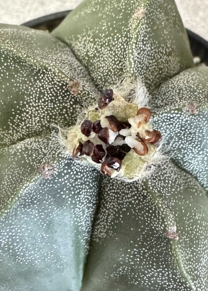 それだと、雨続きで湿度が高い日が続いたり、雨に当たったり、更に程良い気温、曇り続きなど、何より活力に溢れる健康な種が結実しているなど、条件が揃うと、発根まで行かなくても脱皮状態とかで出て来たり。発根しかけで出て来たり、アストロフィツムに限らず、たまぁ〜に起こりますよ〜。