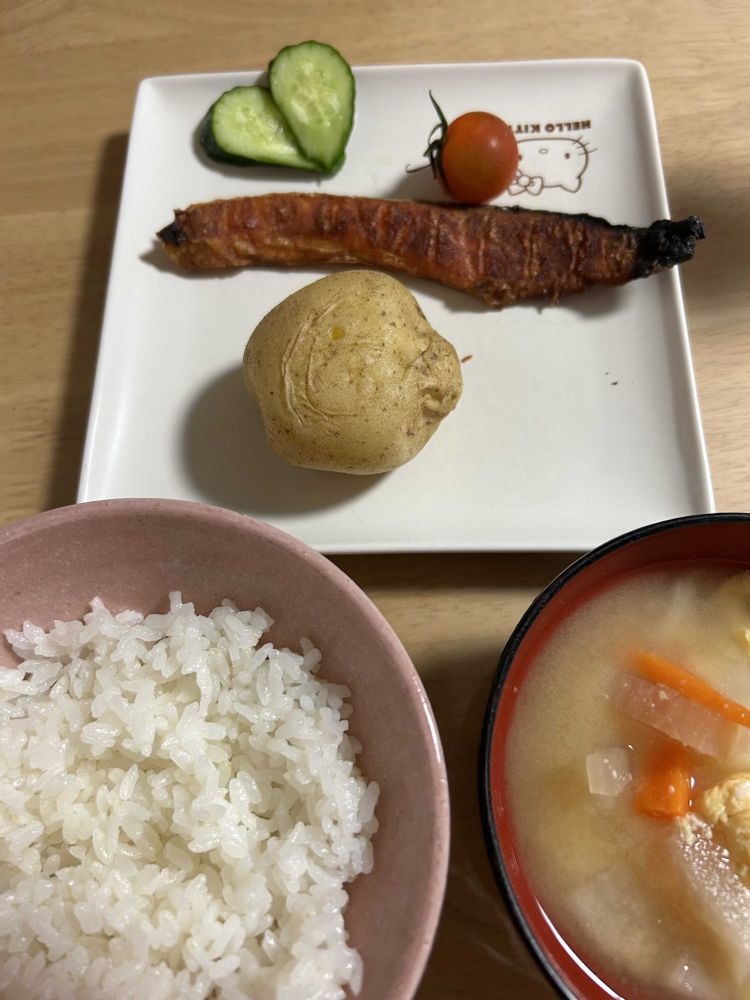 あとはレンジでじゃがいもをふかしてもらえばお腹いっぱいになるはず…ということで、5枚目の写真のような夕飯になりました🤣🤣