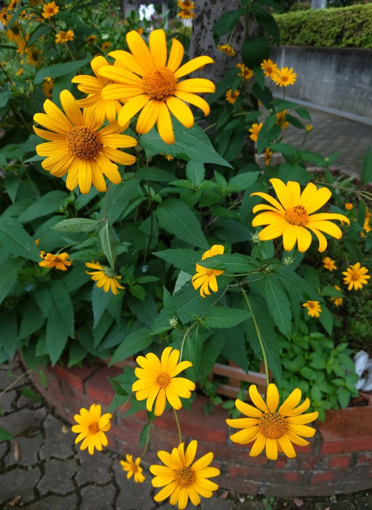 マンションの花壇で「キクイモモドキ」(ヒメヒマワリ)が咲いています🌿💛