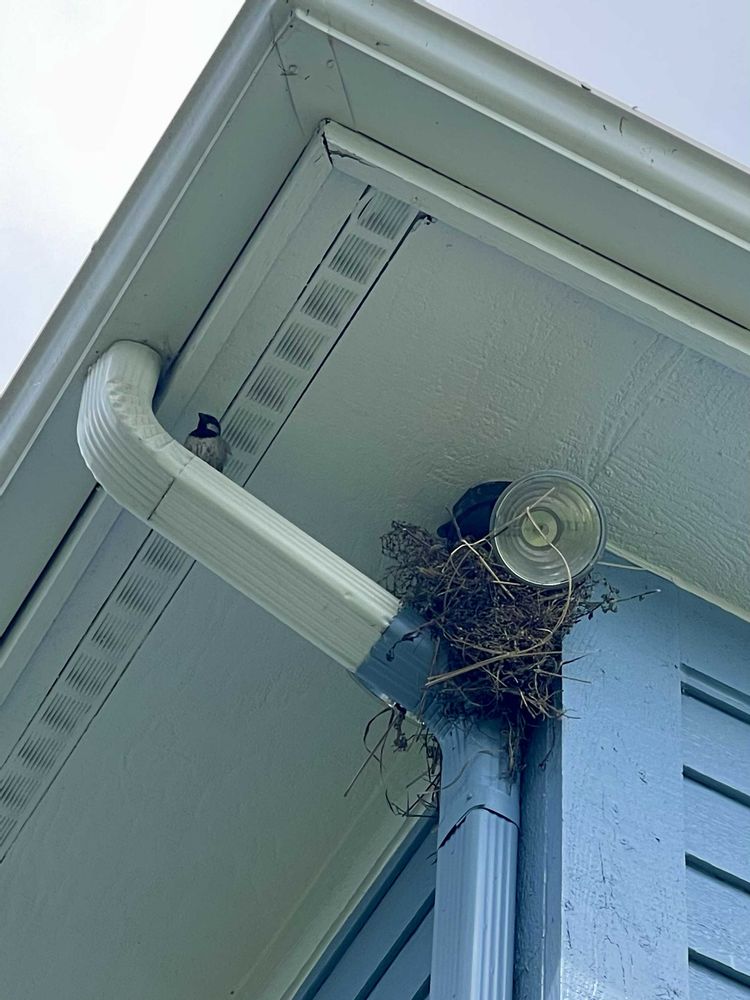 寝室で小鳥の声がいつにも増してよく聞こえる気がすると思っていたら、外に巣ができていました