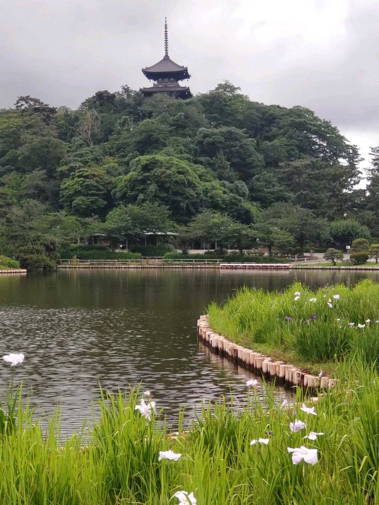 ムラサキカタバミ・ネジバナ・ハンゲショウ・アジサイ・大池からの三重の塔