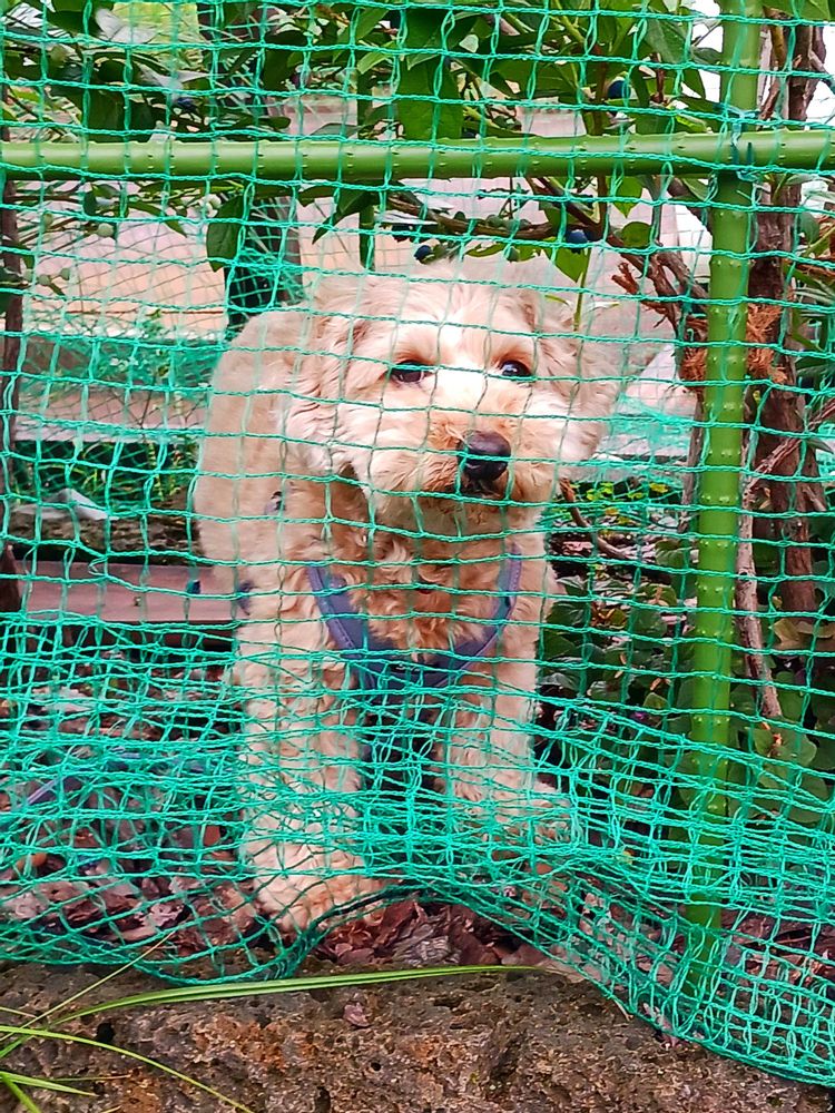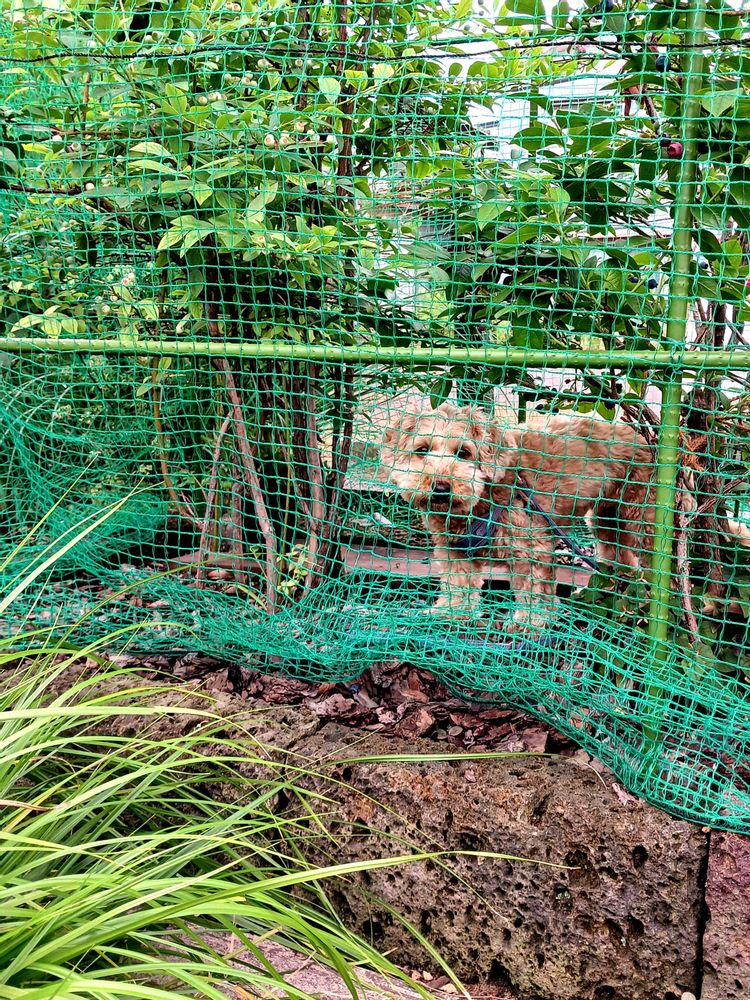 ④毎日、ブルーベリーの囲いの中に勝手に入る🐶。