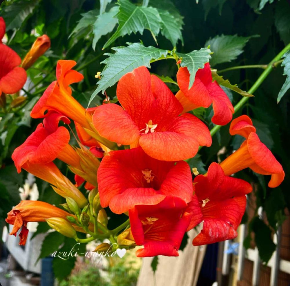 アメリカノウゼンカズラ(学名:Campsis radicans 英名:Trumpet creeper, Trumpet vine)の花🌺🌿🌺