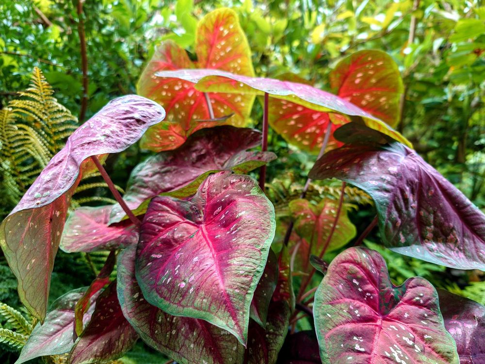 カラーリーフと聞いて思い浮かぶのは、ヒューケラとかコリウスかもですが、カラジウムもマランタも素敵なカラーリーフでしょう。花ものもいいけど葉ものもいいですよね。