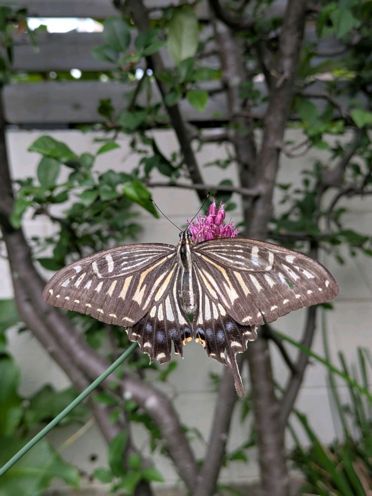 休憩中のナミアゲハ🦋羽根が大分傷ついてます🧐