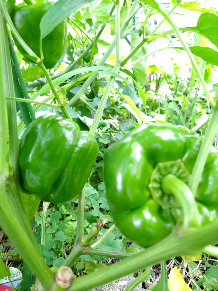 家庭菜園のミニトマト、ピーマン、ししとう達~🍅 ししとうが変形してる💧 高温が原因かな〜