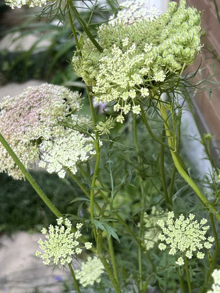 おはようございます☺️PEKO地方晴れ☀️庭のホワイトレースフラワーと🤍ブラックレースフラワー🖤日当たりバッチリのブラックレースはもう種が出来出してます