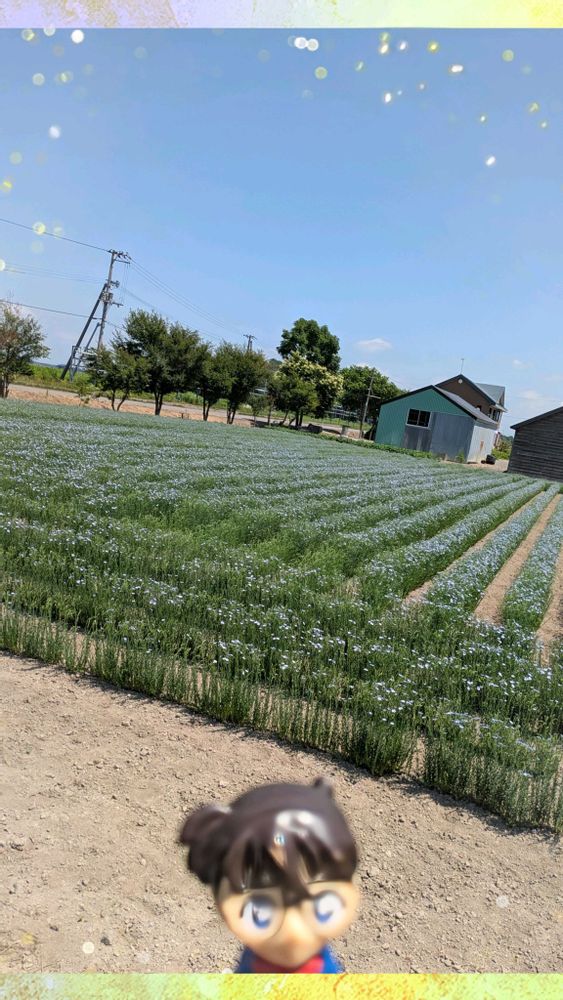 亜麻のお花、繊維質でリネンにするのか亜麻仁油用なのか分からないけど、一面に綺麗でした〜💙午後にはお花が閉じて見れなくなっちゃうの〜。