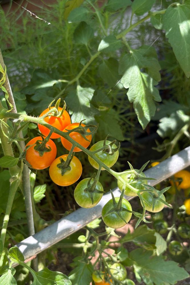 ミニトマトは朝1個色づいて来ました🍅🍅🍅いっぱい採れそうだね🤗♬🍅