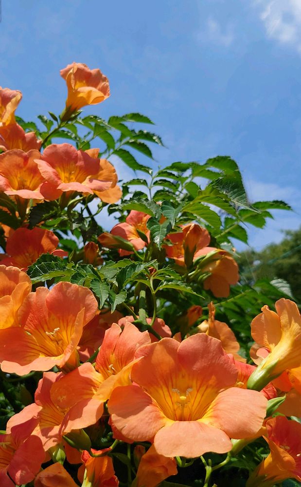 青空とオレンジ🧡のノウゼンカズラ! とても似合ってます☺️
