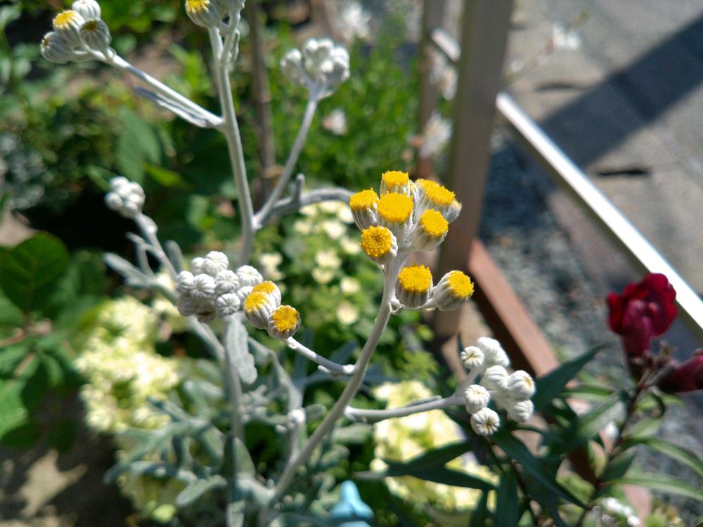 キンギョソウとシロタエギクが咲いて、ちょっとだけ賑やかに♪
